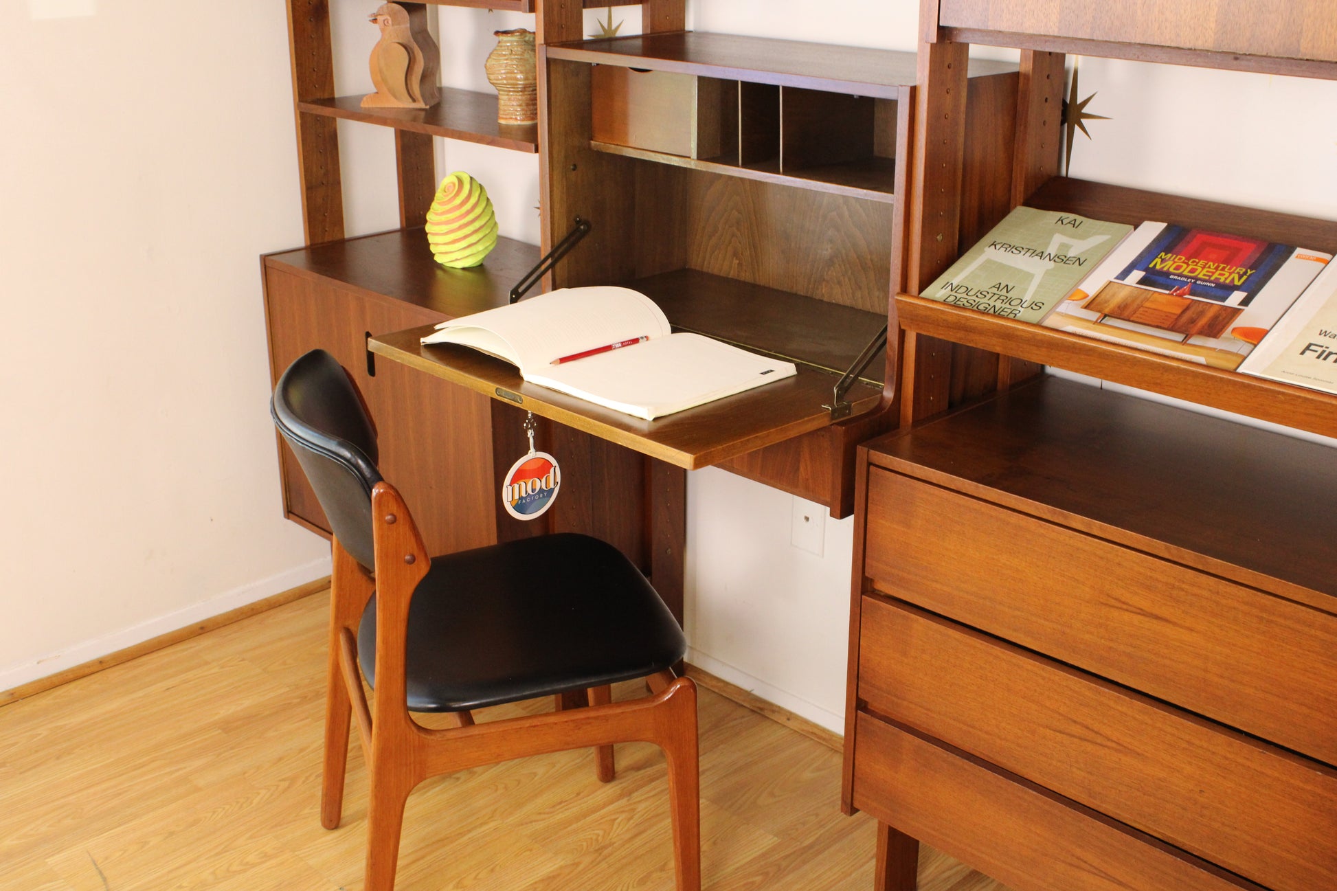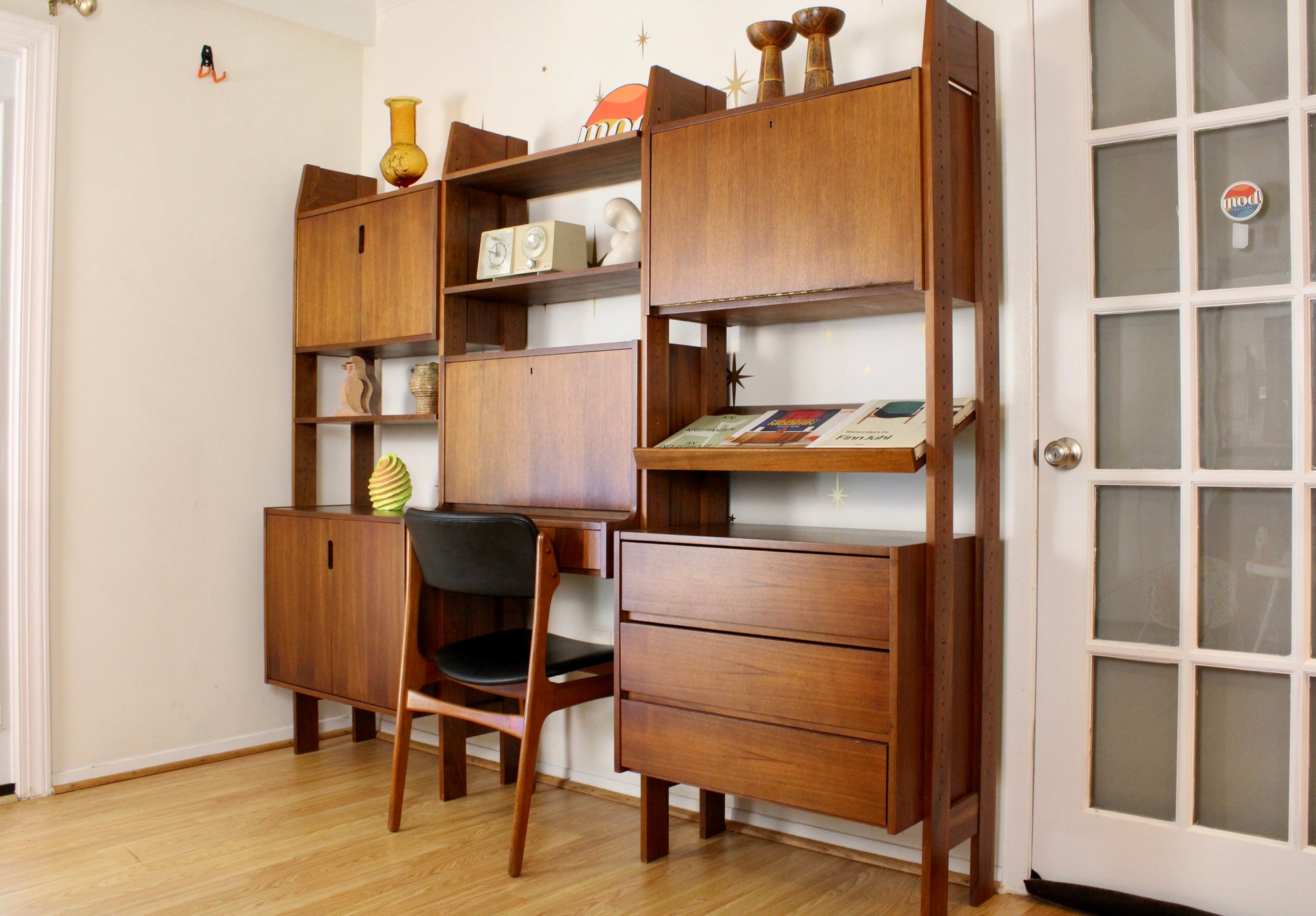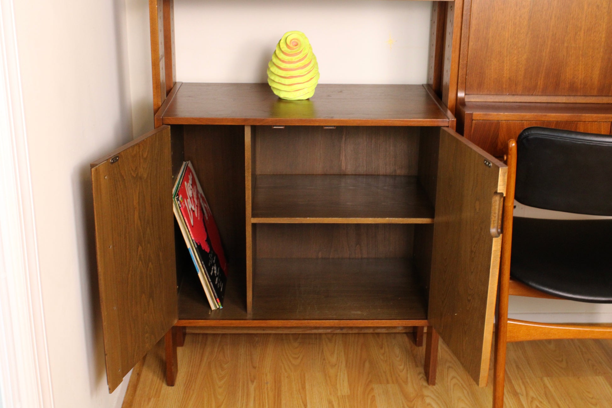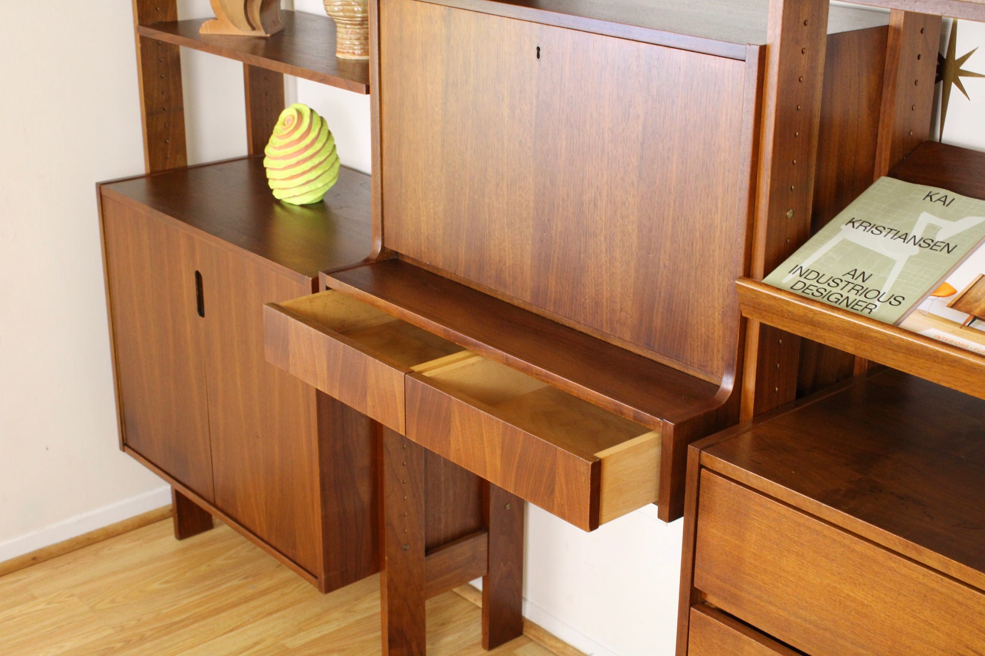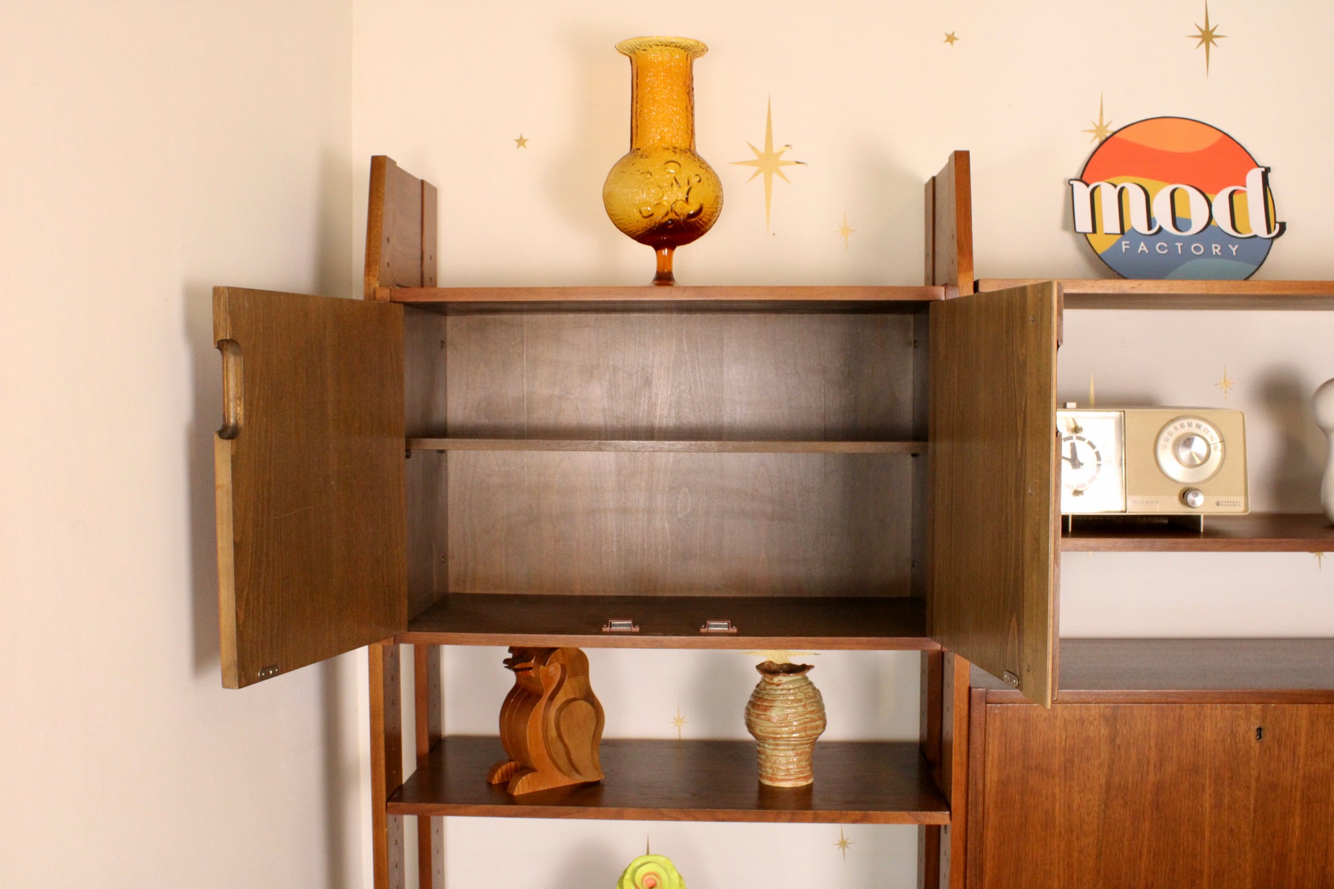 All compartments and shelves are height adjustable and can be easily re-configured to suit your needs. With its elegant wood tones, clean lines, and multifunctional layout, this unit is the ultimate statement piece for any MCM enthusiast—offering storage, workspace, and display all in one.